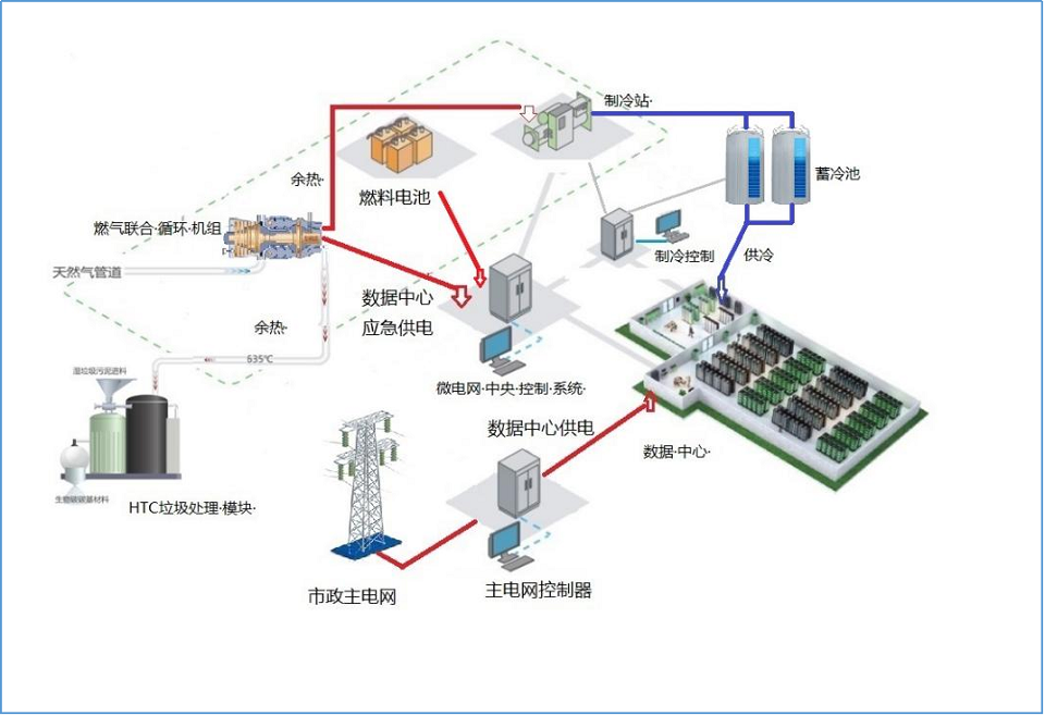 取代柴油機(jī)備份電源,大大降低冗余供電設(shè)施的規(guī)模,并充分利用已建成的冗余供電設(shè)施為數(shù)據(jù)中心的制冷模塊供電和供熱,降低數(shù)據(jù)中心的運(yùn)營(yíng)成本;